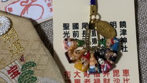 それぞれのミニチュア七福神様を集め、ストラップのお守りを完成させました𓈒